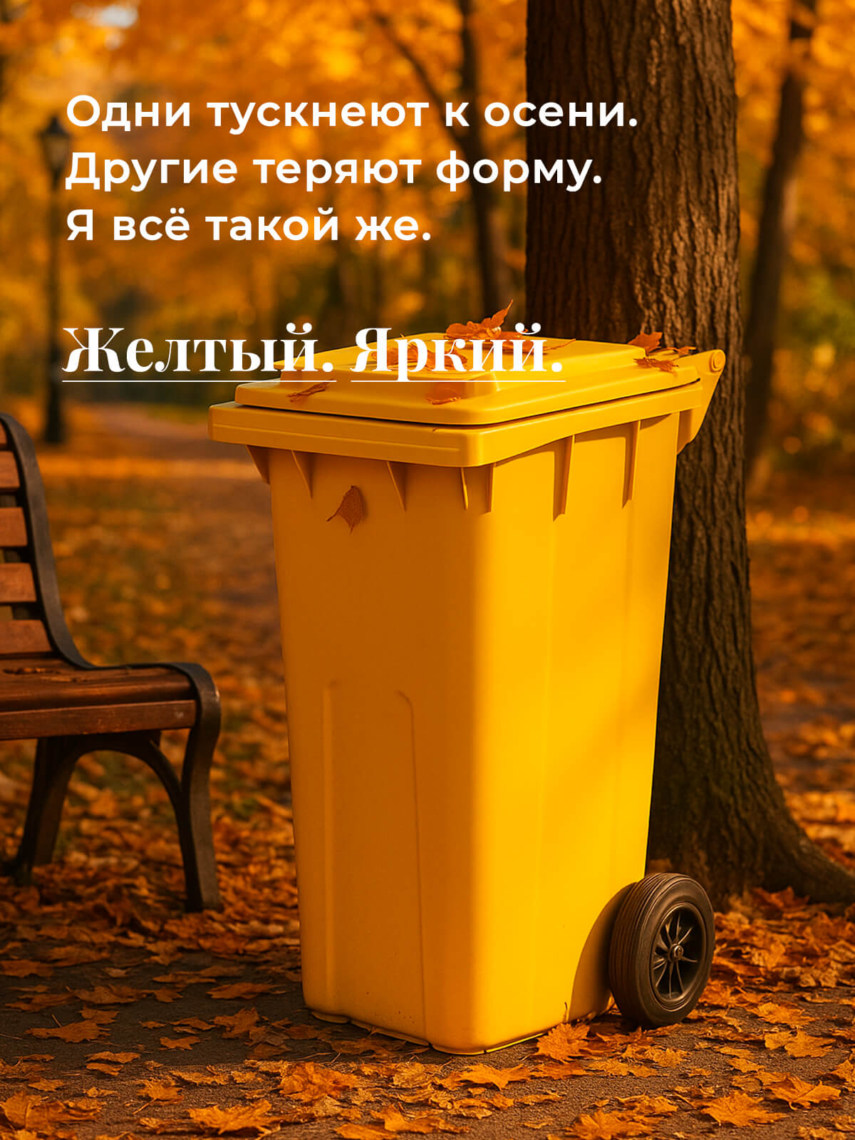 Если вам нужен долговечный контейнер для сбора мусора для эффективной организации отходов и раздельного сбора пластика, жёлтый вариант станет идеальным выбором. Он сочетает функциональность, прочность и высокую заметность.