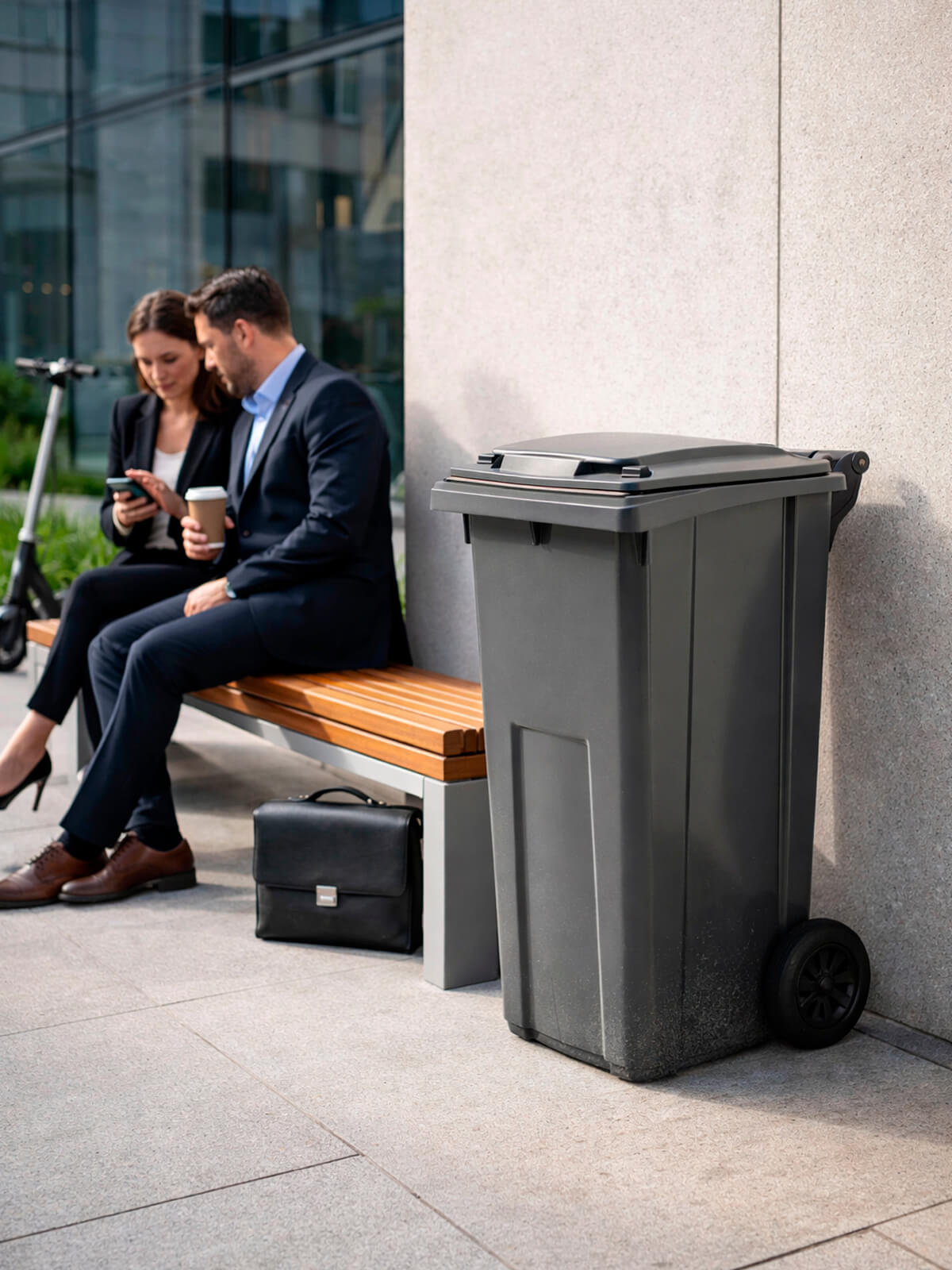 Серый контейнер для мусора 120 л — практичное решение для домовладений, дворов многоквартирных домов, ТСЖ, предприятий и муниципальных объектов. Нейтральный серый цвет традиционно используется для смешанных и твёрдых бытовых отходов, поэтому такой мусорный контейнер уличный идеально подходит для городских дворов и коммерческих объектов.